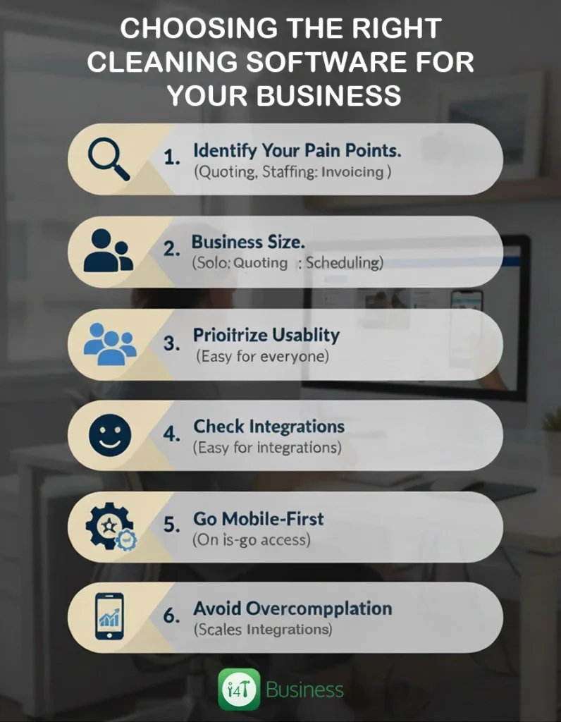 Start by identifying your biggest challenges, like quoting or scheduling, then choose software that solves those problems first. Over time, move to an all-in-one platform like i4T Business for total control.