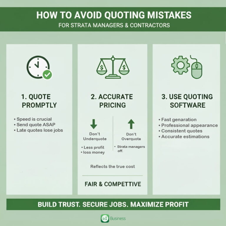 Building a strong working relationship with strata managers is essential for tradies looking to secure more consistent and profitable jobs. By avoiding these common mistakes, whether it’s underquoting, failing to communicate, or not keeping track of compliance, you’ll set yourself up for success.